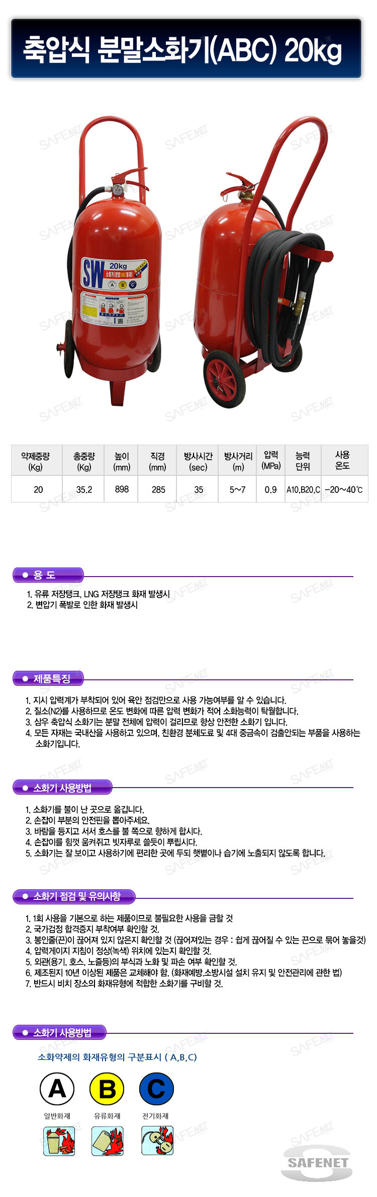 축압식분말소화기(ABC,20KG)