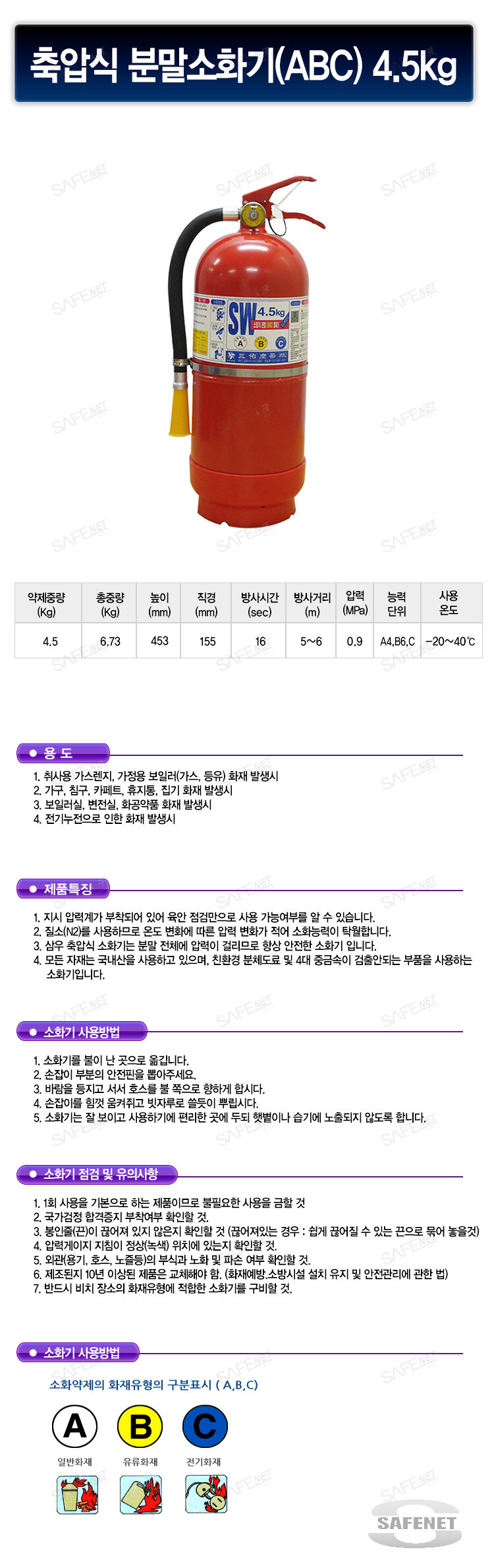 축압식분말소화기(ABC,4.5KG)