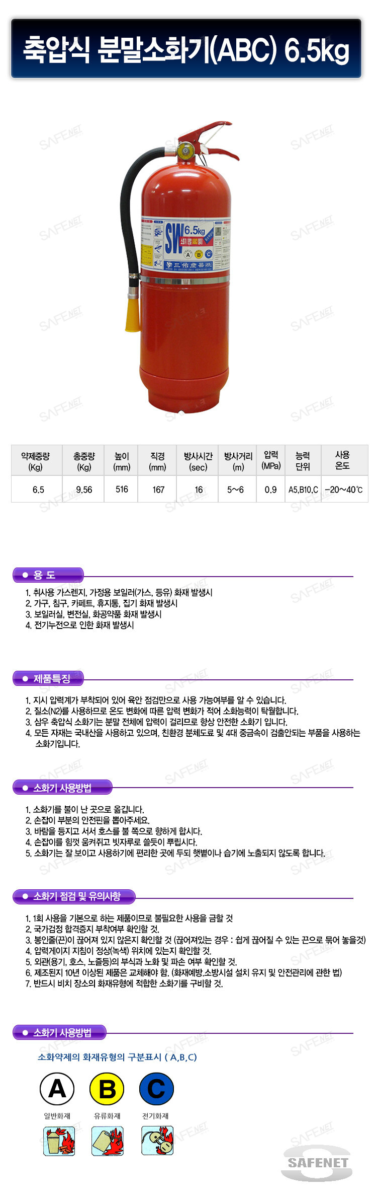 축압식분말소화기(ABC,6.5KG)