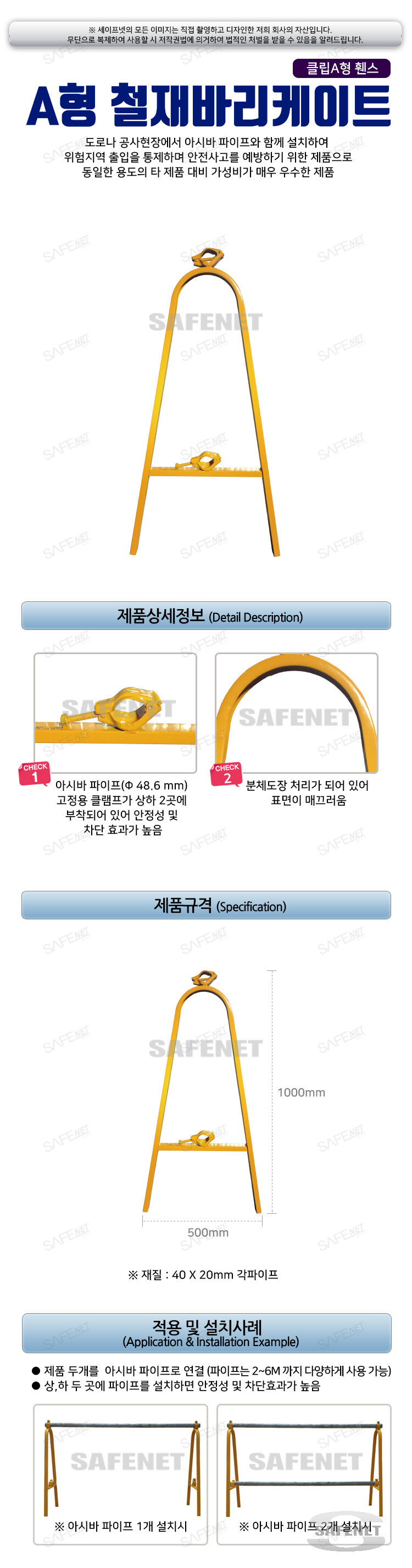 규격 폭 500 * 높이 1000mm, 각파이프, 황색분체도장