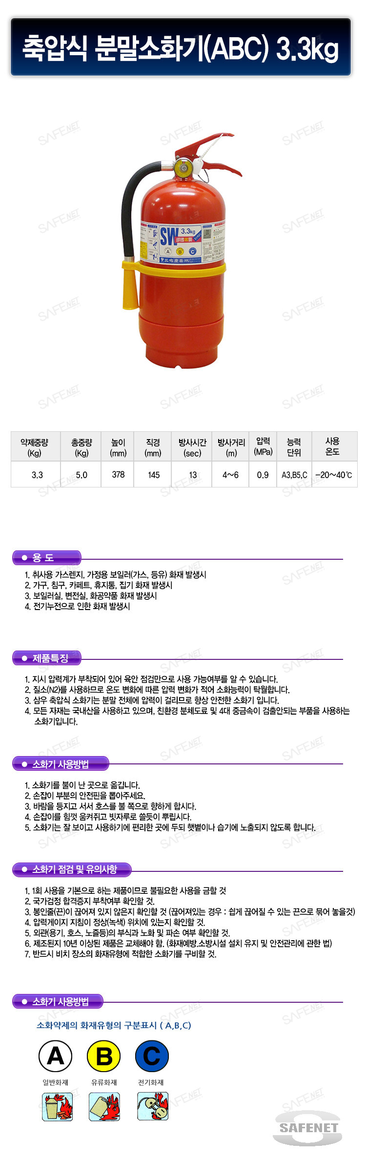 축압식분말소화기(ABC,3.3KG)