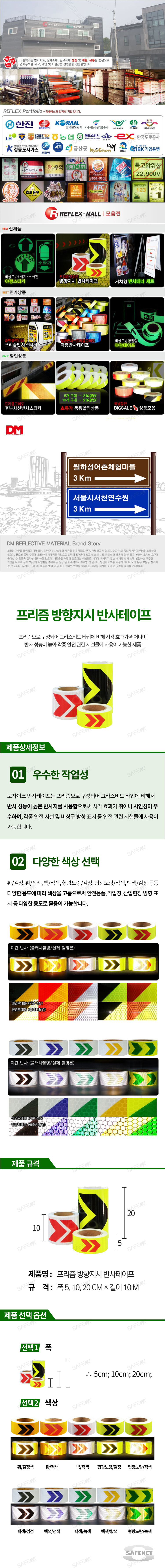 방향지시 반사테이프는 프리즘으로 구성되어 그라스비드 타입에 비해 시각효과가 뛰어난 제품으로 반사성능이 높고 고급형으로 만들어져 사용이 편리합니다.