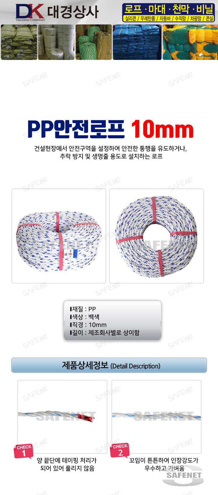 PP로프 - 기성품 으로 공사현장 및 기타 안전을 유도하기 위한 로프​