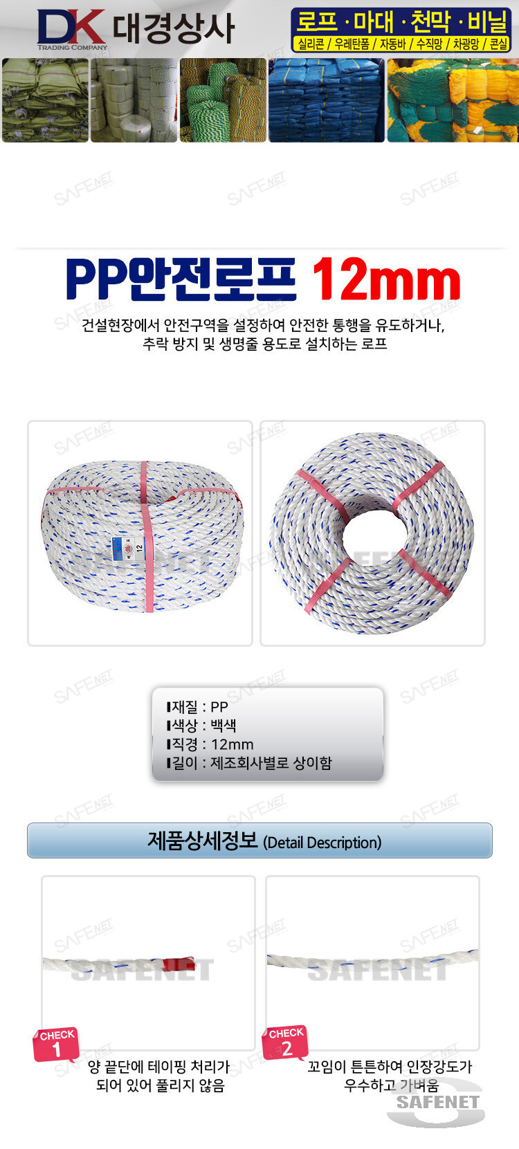 pp로프 사이즈 : 12mm (100m)