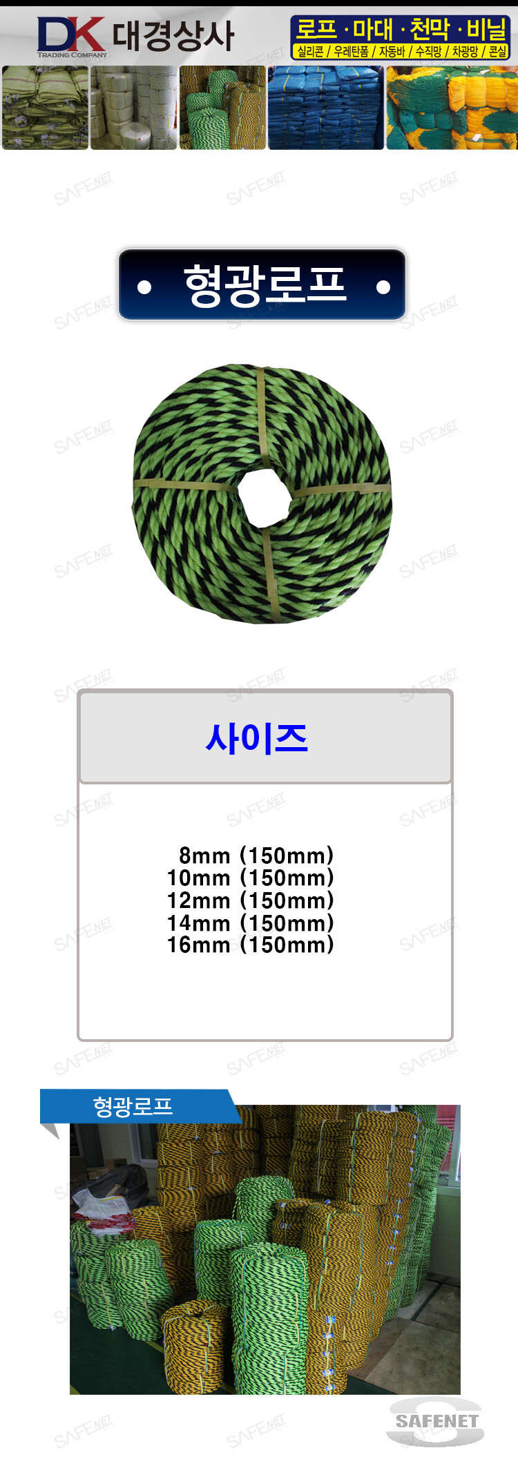 형광로프 : 사이즈 8mm,10mm,12mm,14mm,16mm (150mm)