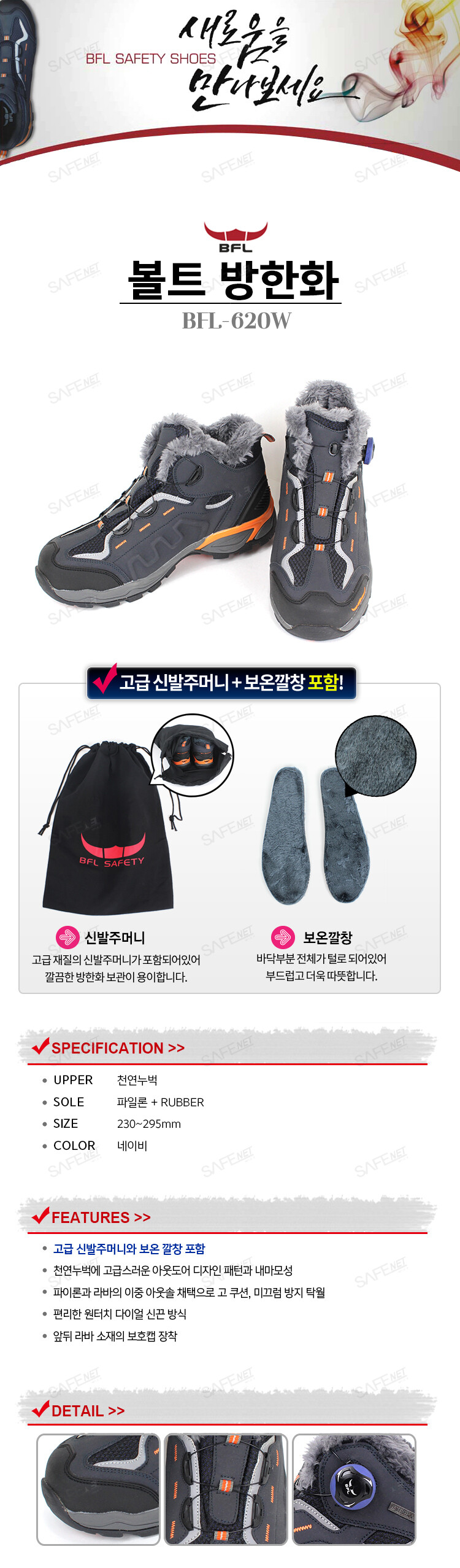 모델명 볼트 BFL-620 네이비 방한화
