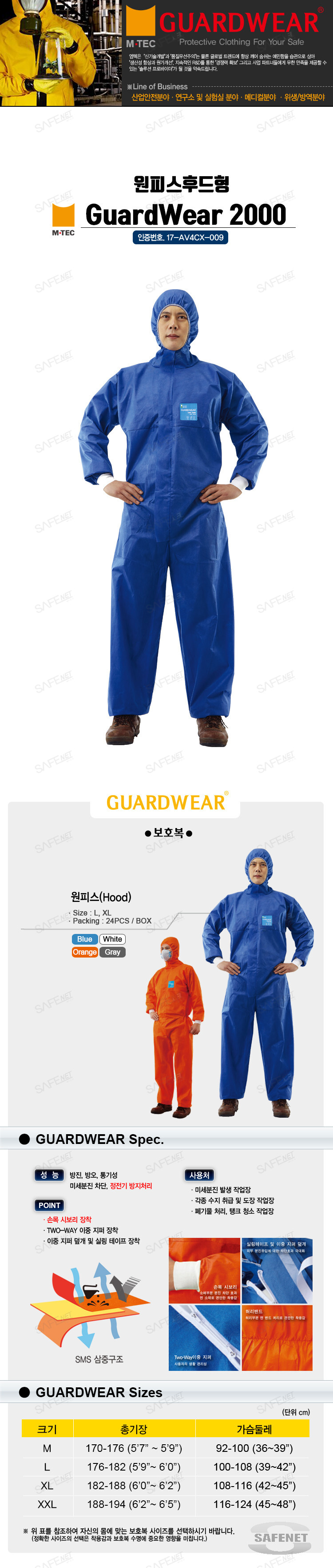 엠텍 가드웨어 2000 보호복/원피스후드형