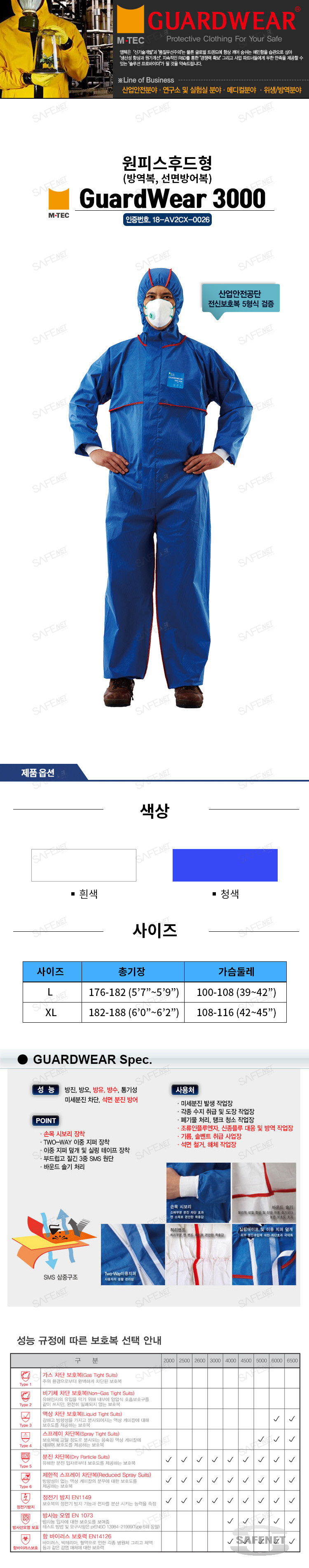 엠텍 가드웨어 3000 보호복/원피스후드형 (방역복,석면방어복)