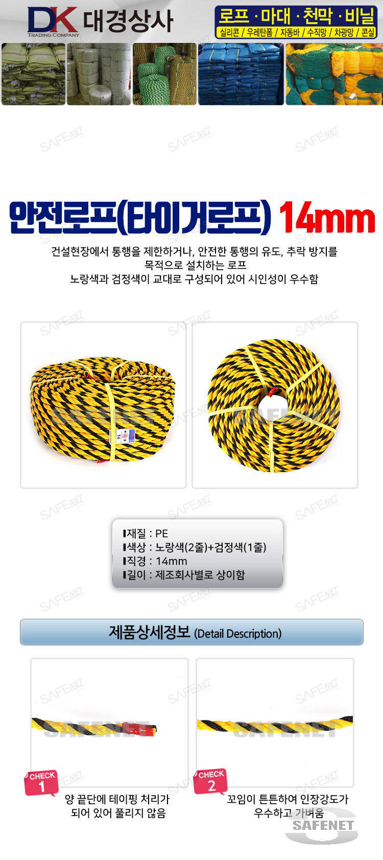 타이거로프 - 기성품 으로 공사현장 및 기타 안전을 유도하기 위한 로프​