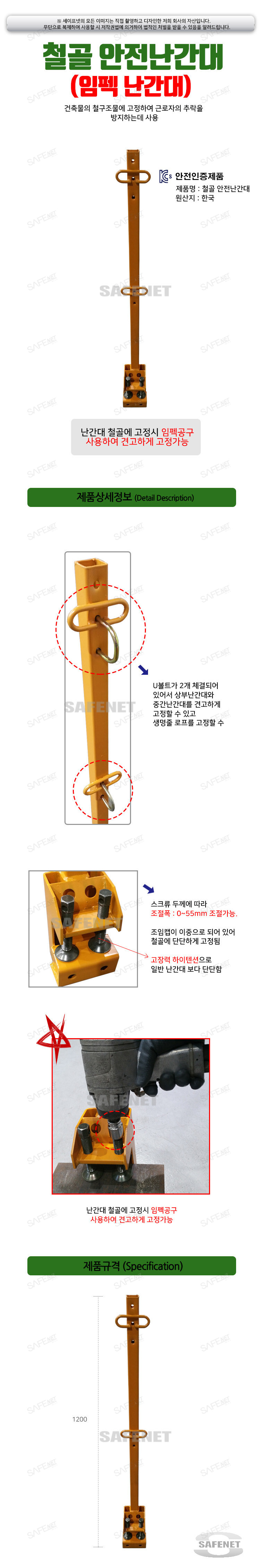 - 철골구조물에 설치시 일반 난간대보다 단단하게 설치 및 해체가능