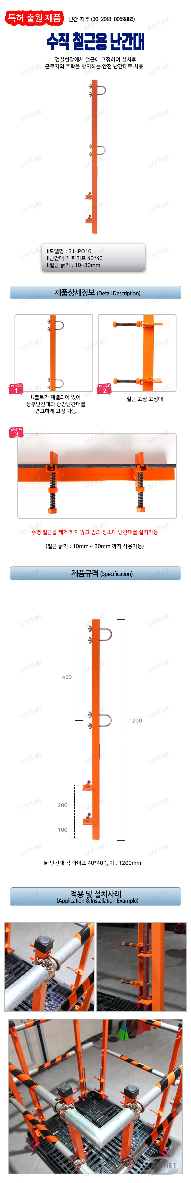 1. 건설현장에서 철근에 고정하여 설치후 근로자의 추락을 방지하는 안전 난간대로 사용
