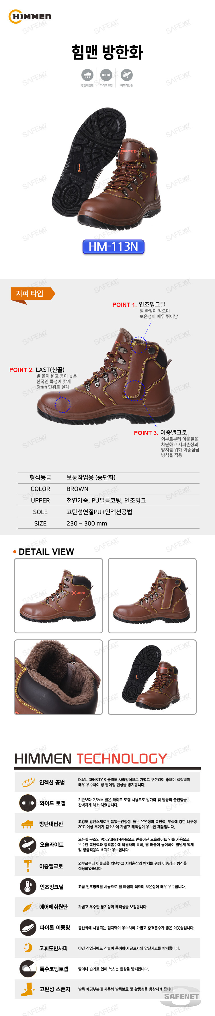 규격 방한화 / 6인치 / 지퍼타입 / 230~300mm / 인젝션공법