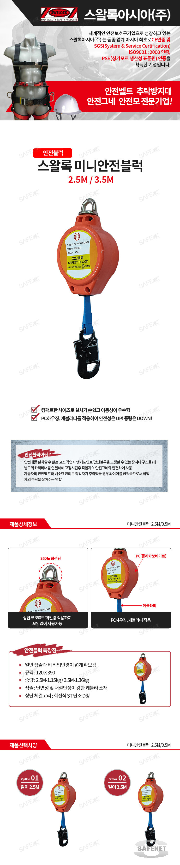규격 120 X 390mm / 2.5M-1.15kg ,3.5M-1.36kg / 하우징 PC재질, 죔줄 케블라 소재