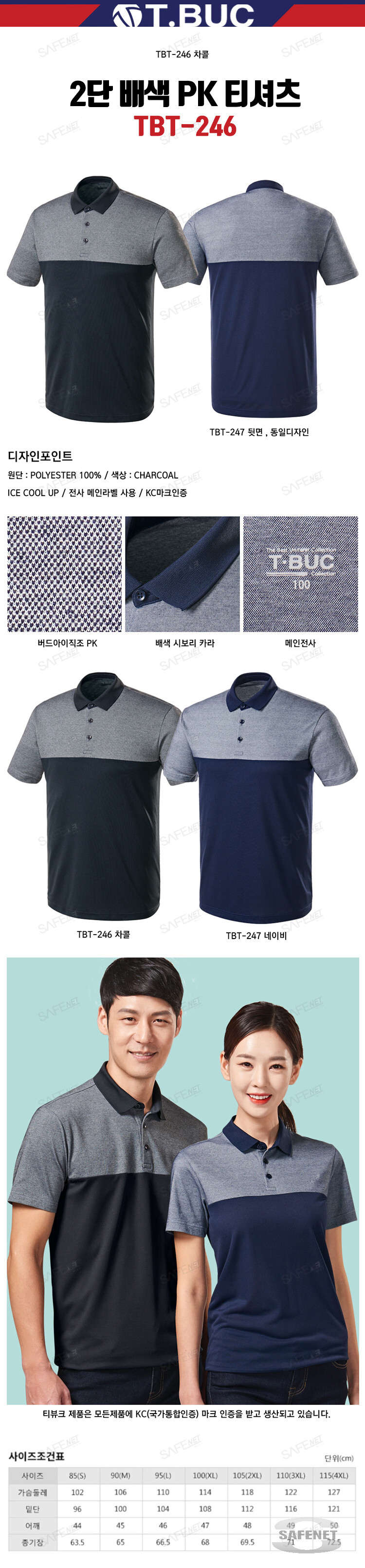 2단 배색 PK 티셔츠 (TBT-246) 차콜