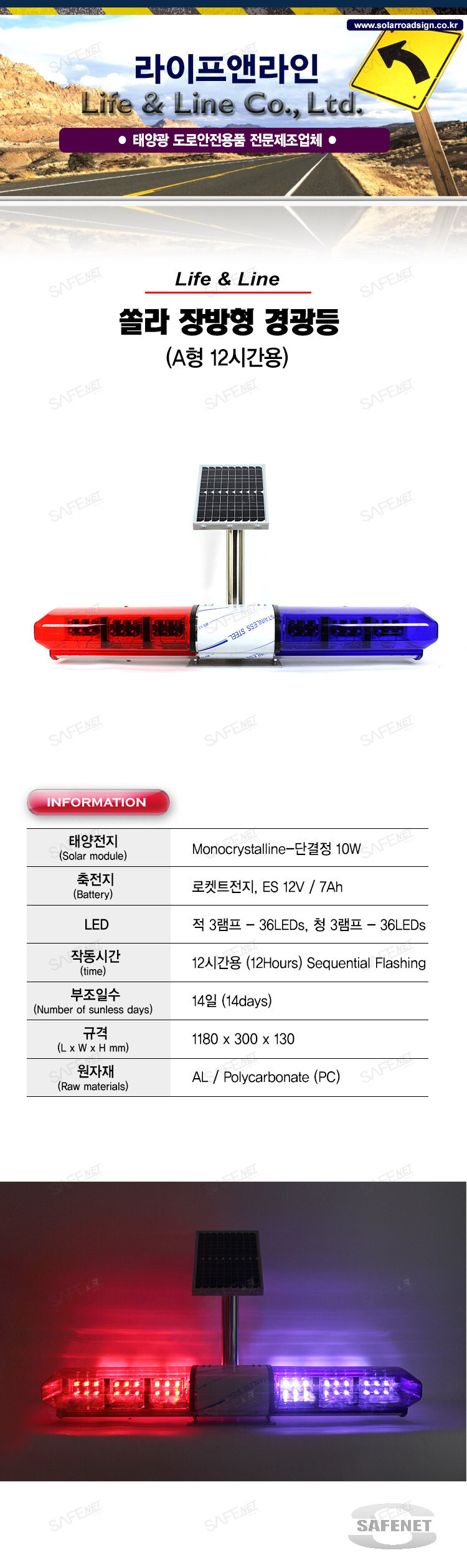 라이프앤라인 쏠라장방형경광등 A형(기본형) 12시간용