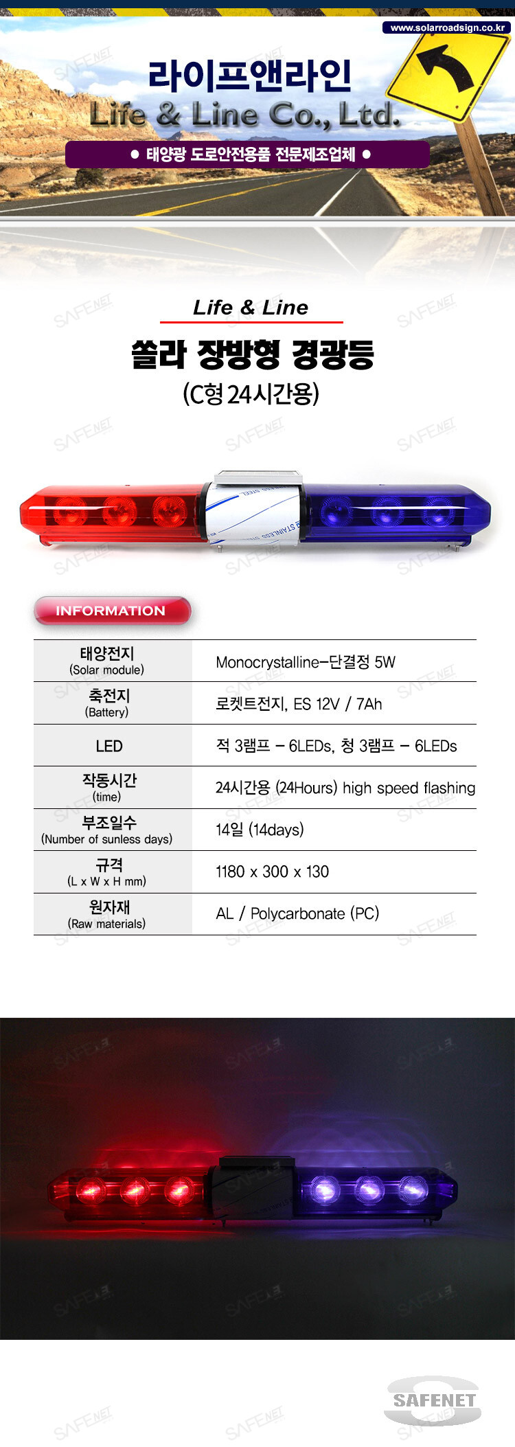 라이프앤라인 쏠라장방형경광등 C형(현장용) 24시간용