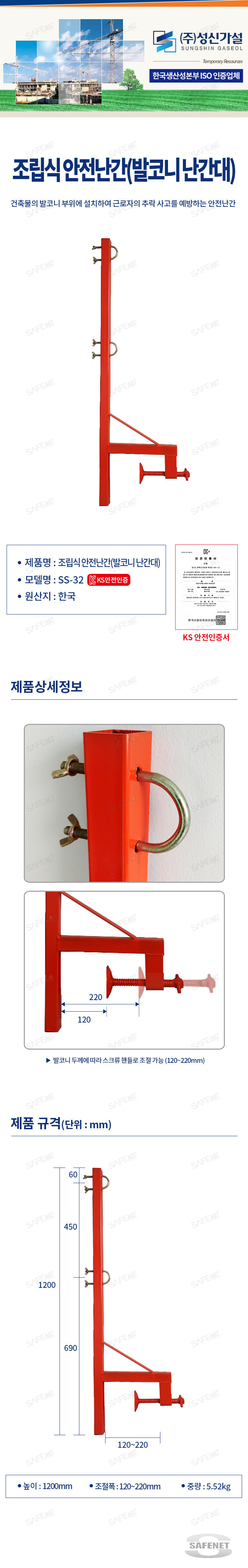 규격 높이 : 1200mm /조절폭 : 120~220mm / 중량 : 5.52kg