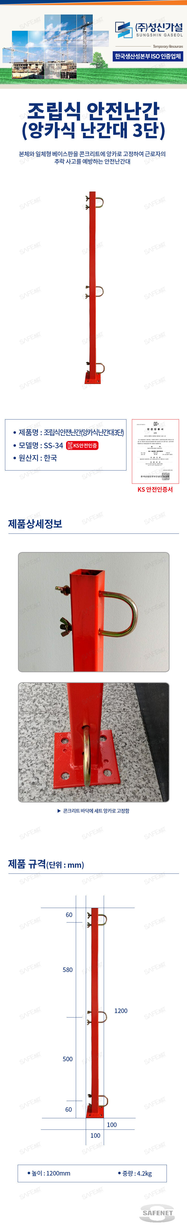 조립식 안전난간(앙카식 난간대 3단) ★성신