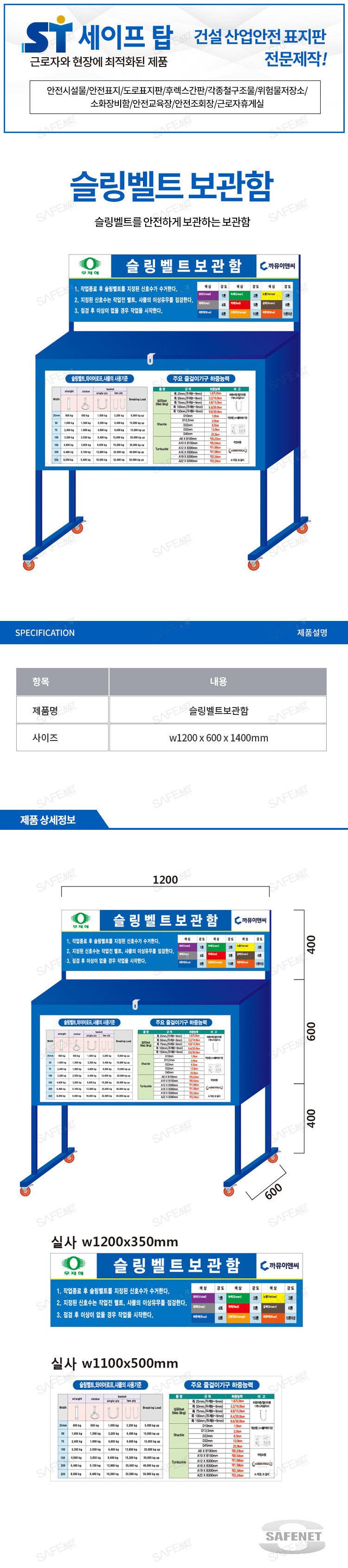 업체 > 안전용품 > 공사현장제작품 > 각종보관함-점검대 > 슬링벨트보관함(14)