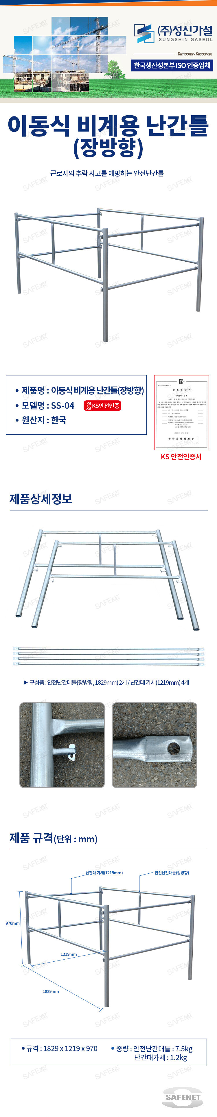 규격 1829 x 1219 x 970mm / 안전난간대틀 : 7.5kg 난간대가세 : 1.2kg