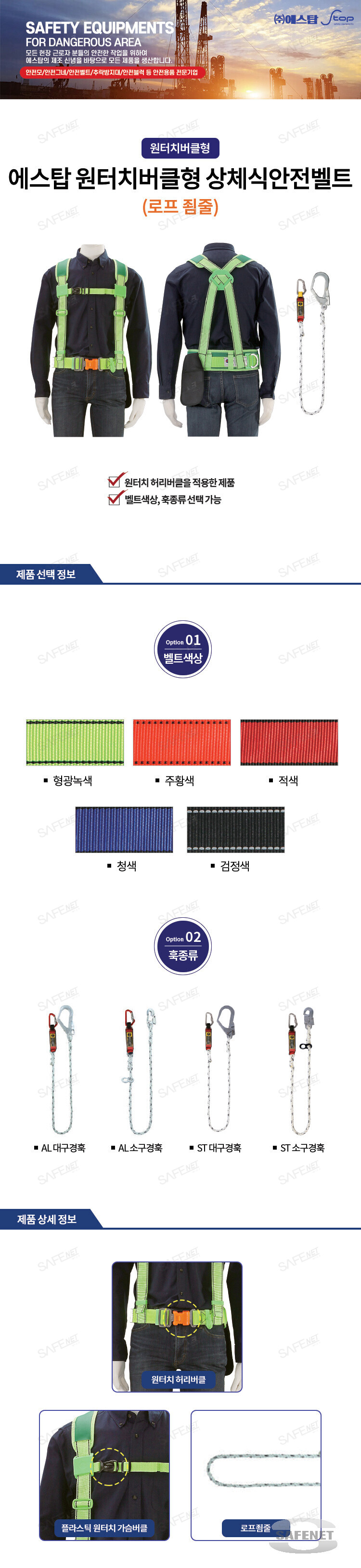 에스탑 원터치버클형 상체식안전벨트 (로프죔줄)