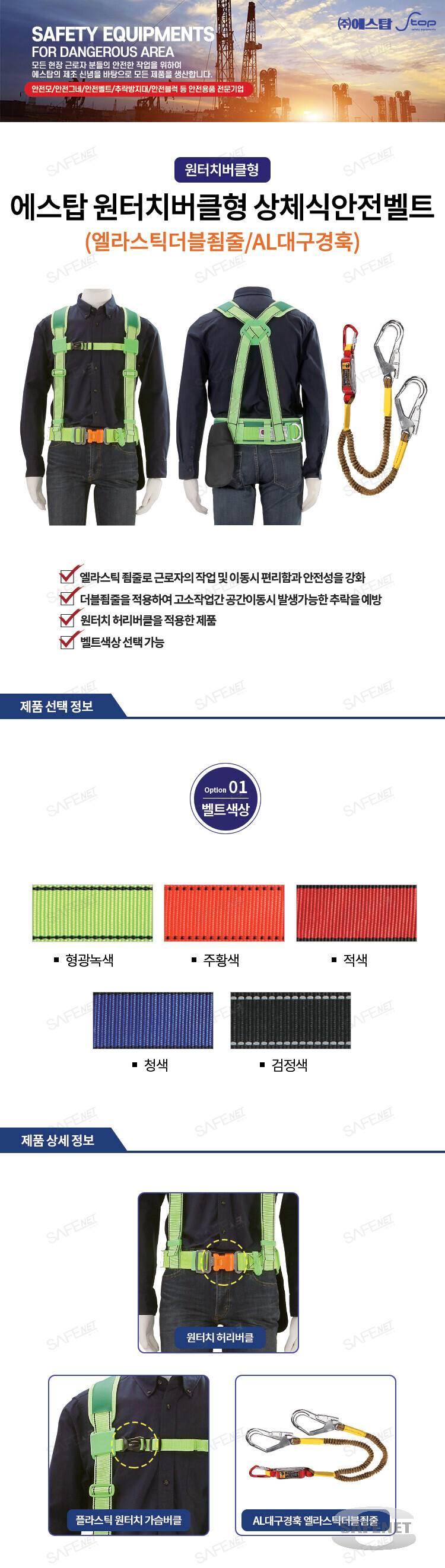 에스탑 원터치버클형 상체식안전벨트 (엘라스틱더블죔줄/AL대구경훅)