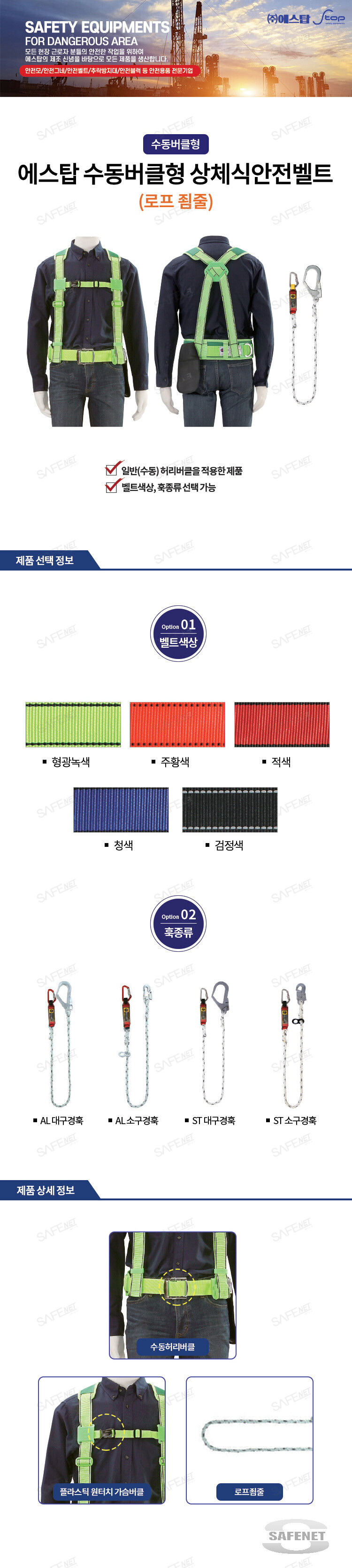 에스탑 수동버클형 상체식안전벨트 (로프죔줄)