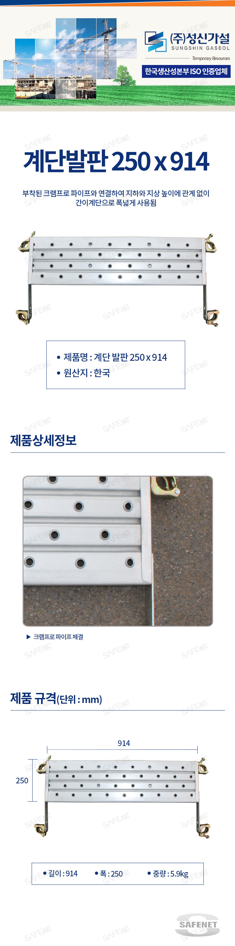 규격 914 X 250(mm) 중량 5.9kg