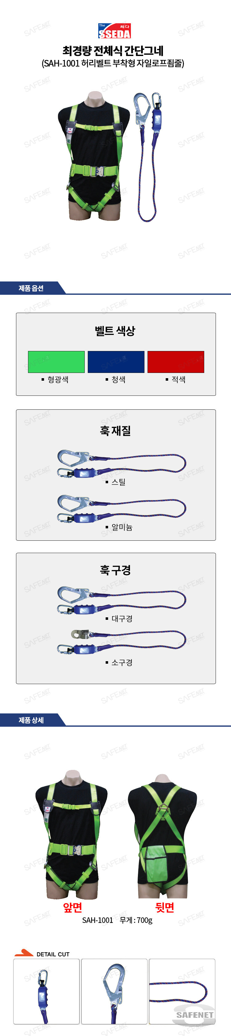 쎄다(SSEDA) 최경량안전그네 (SAH-1001/허리벨트부착형/자일로프죔줄)