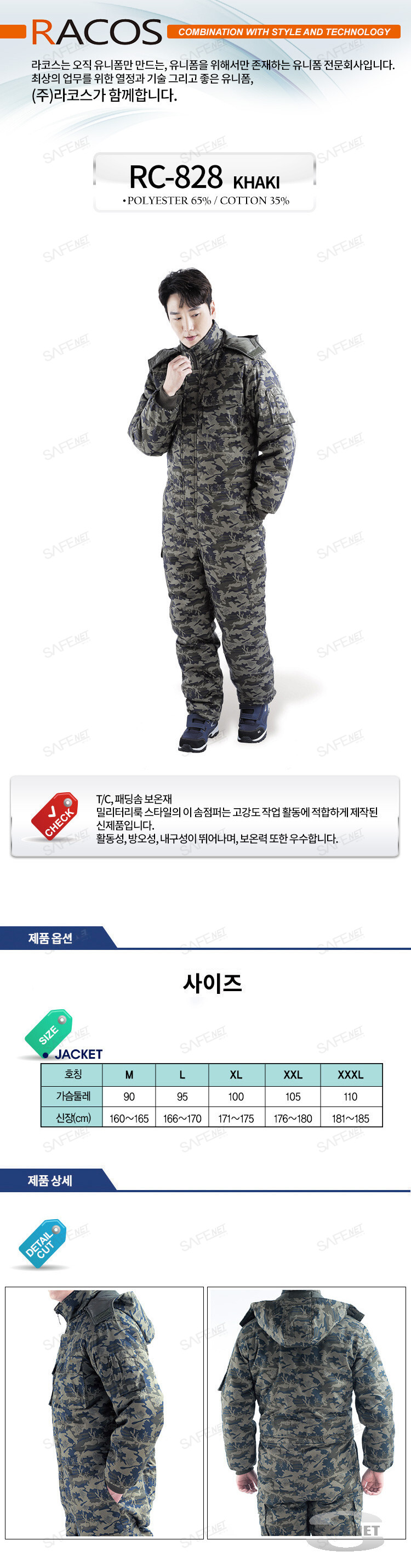 규격 밀리터리룩 / L,XL,2XL,3XL / 패딩솜보온재