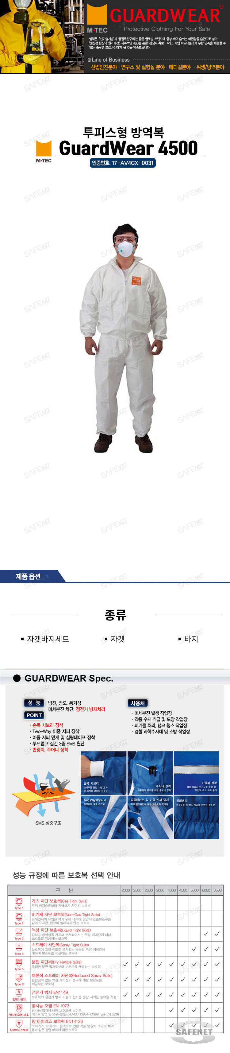 엠텍 가드웨어 4500 보호복/투피스형 (방역복)