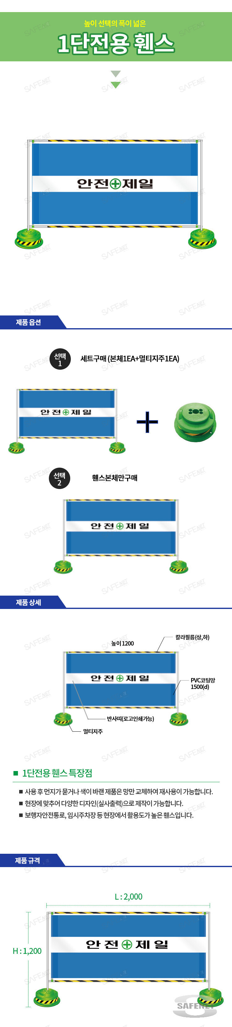 규격 H1200 X W2000mm / 메쉬망 / 반사띠 / 안전제일인쇄 / 멀티지주
