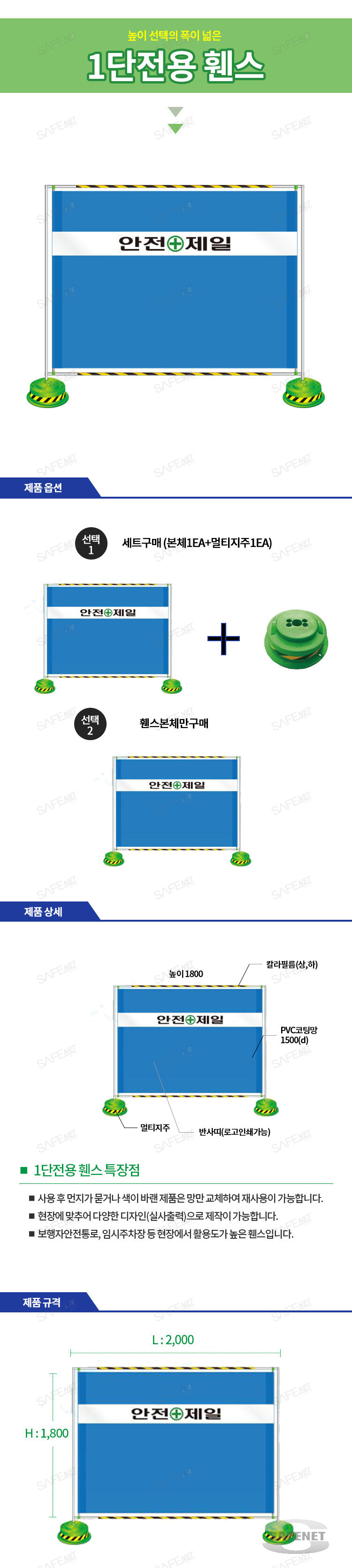 규격 H1800 X W2000mm / 메쉬망 / 반사띠 / 안전제일인쇄 / 멀티지주