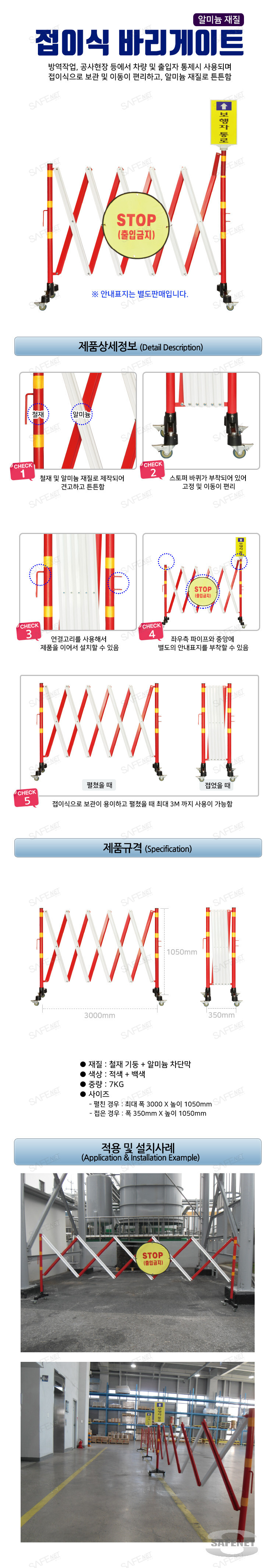 규격 펼친경우 : 최대 폭 3000mm x 높이 1050mm 접은경우 : 폭 350mm x 높이 1050mm