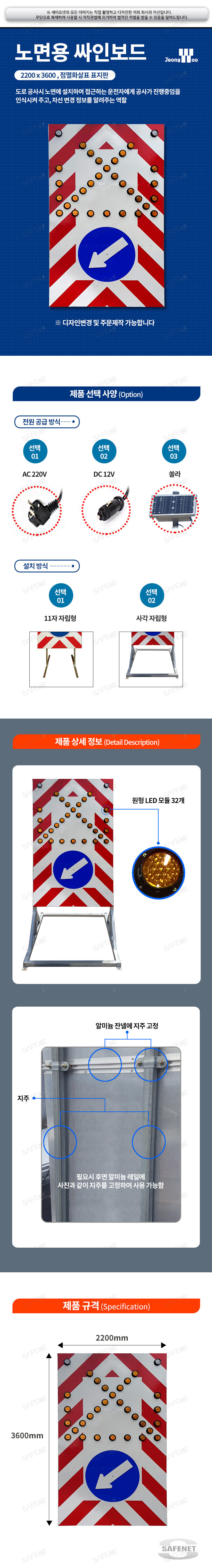 규격 2200 X 3600mm / LED / 좌측,우측, 양방향 유도가능 / 전원방식 및 설치용지주 선택가능