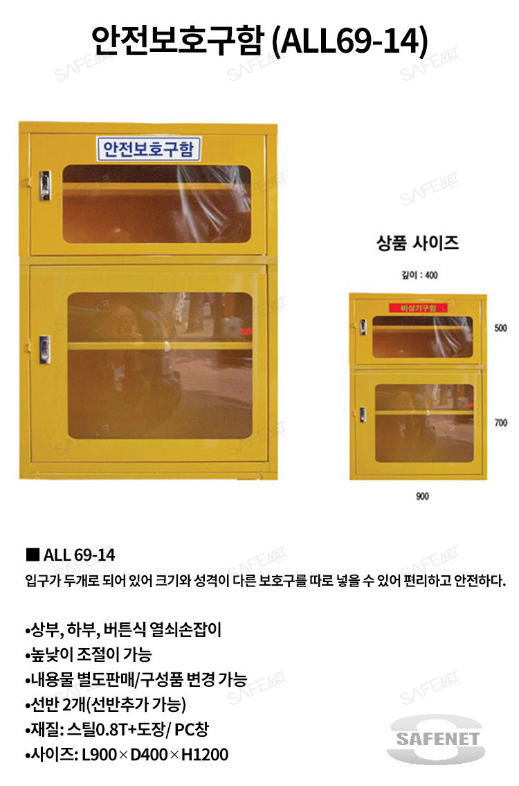 ■ ALL 69-14 입구가 두개로 되어 있어 크기와 성격이 다른 보호구를 따로 넣을 수 있어 편리하고 안전하다. 상부, 하부, 버튼식 열쇠손잡이높낮이 조절이 가능내용물 별도판매/구성품 변경 가능선반 2개(선반추가 가능)재질: 스틸0.8T+도장/ PC창사이즈: L900×D400×H1200