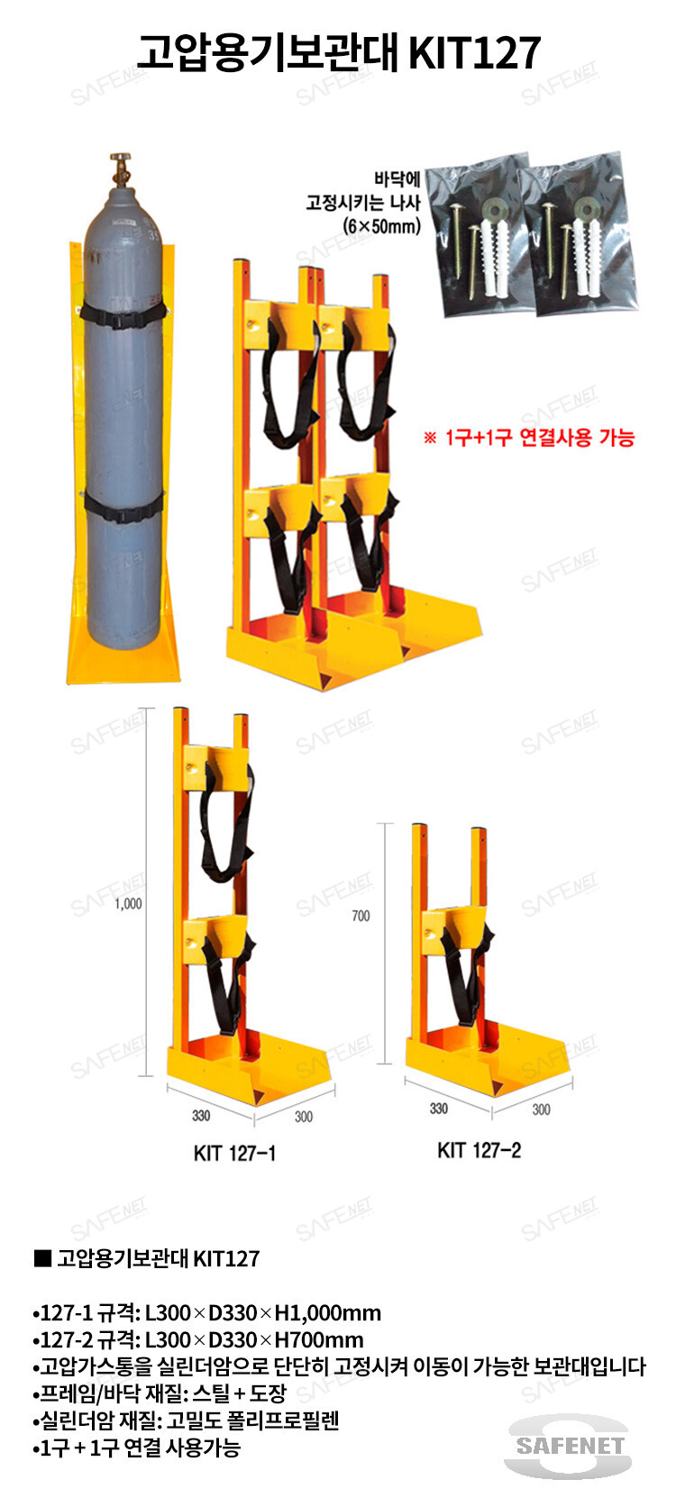 1. 고압가스통을 실린더암으로 단단히 고정시켜 이동이 가능한 보관대입니다.