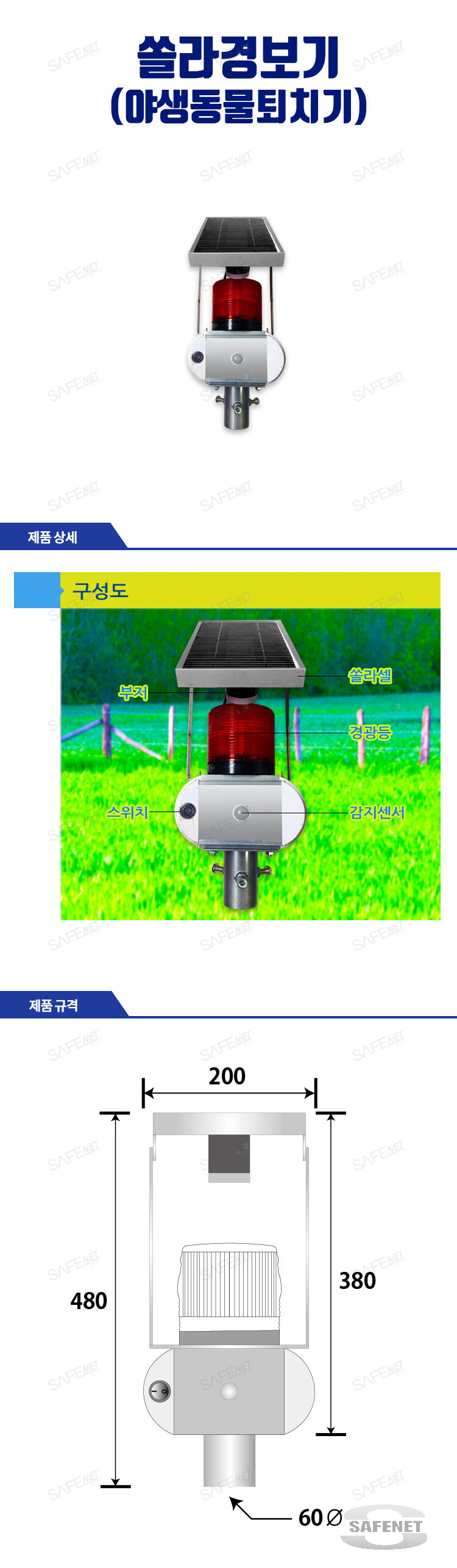규격 200 X 480mm / 감지센서+부저+경광등 / 온오프스위치