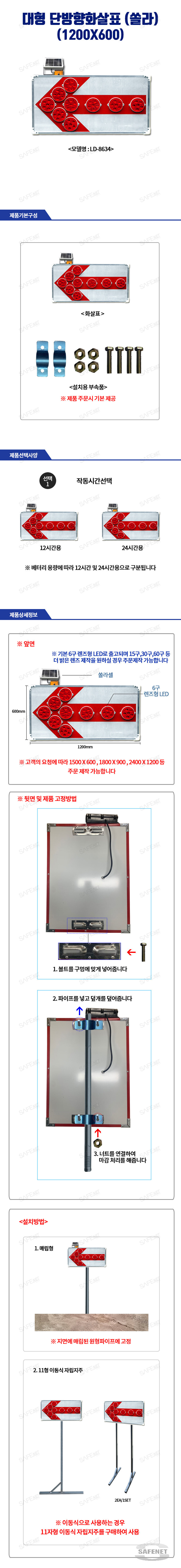 규격 1200 X 600mm / 쏠라 / 단방향화살표 / 6구 렌즈형 LED / 백색 반사지