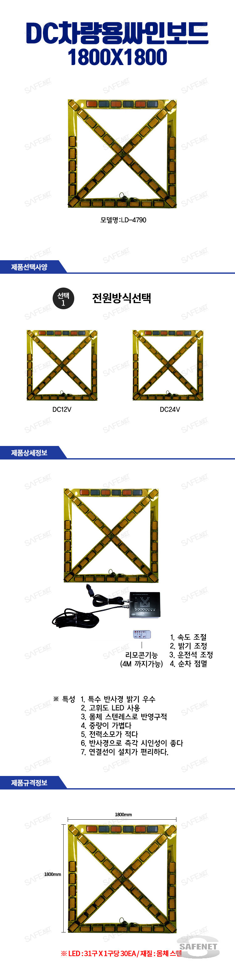 규격 1800 X 1800mm / 4각 LED모듈 47개로 구성 / 2.5톤 이상 차량용