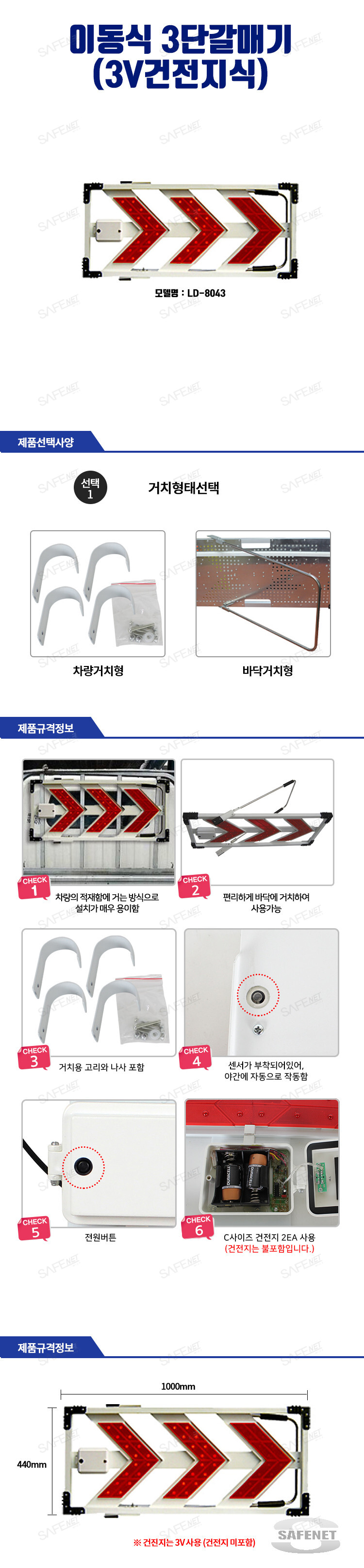 이동식 3단갈매기표지 1040X420 (3V건전지식)