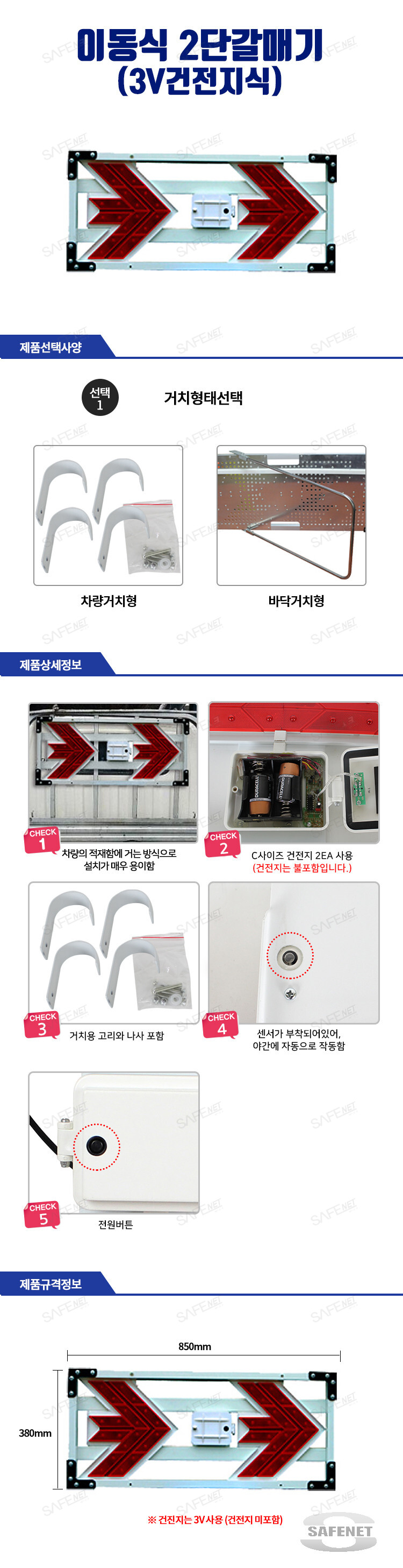 규격 850 X 380mm / 3V 건전지식 / 차량 및 바닥거치용