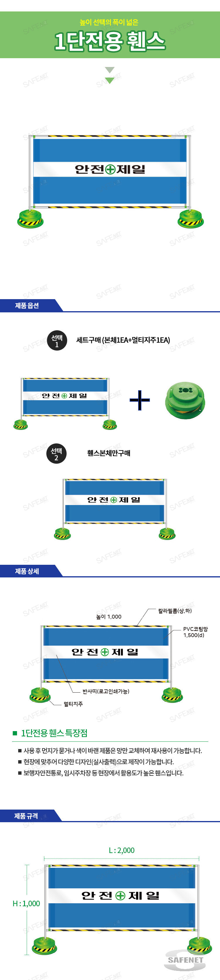 규격 H1000 X W2000mm / 메쉬망 / 반사띠 / 안전제일인쇄 / 멀티지주