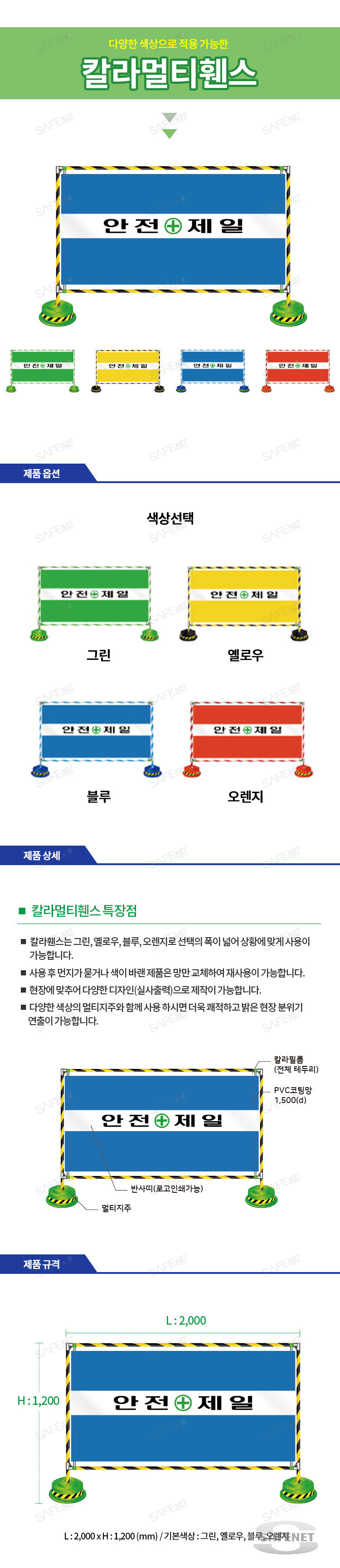 규격 H1200 X W2000mm / 메쉬망 / 반사띠 / 안전제일인쇄 / 휀스본체+소형멀티지주 세트
