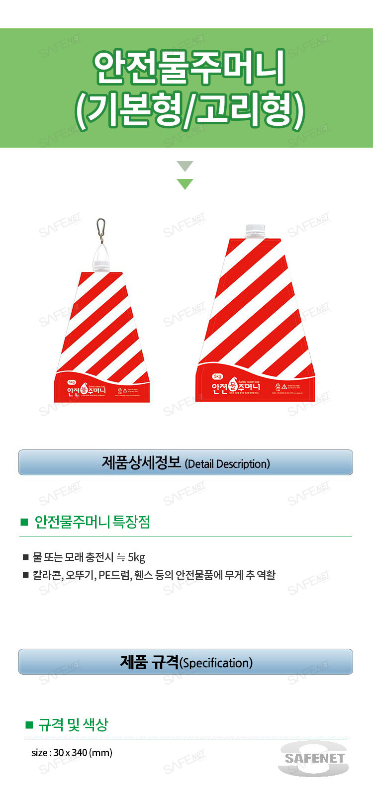 규격 30×340 ≒5kg (물/모래 충진가능)