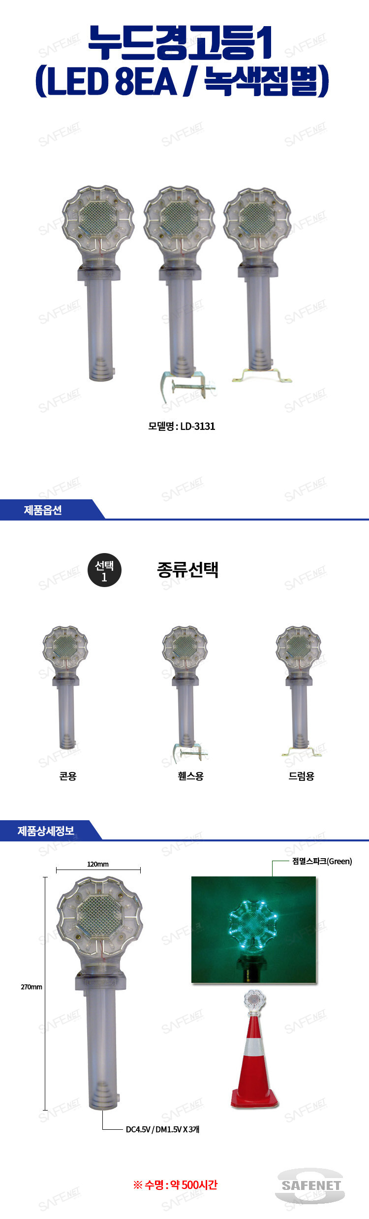규격 120 X 270mm / DM 1.5V 건전지 3개 / LED 8EA / 녹색스파크점멸