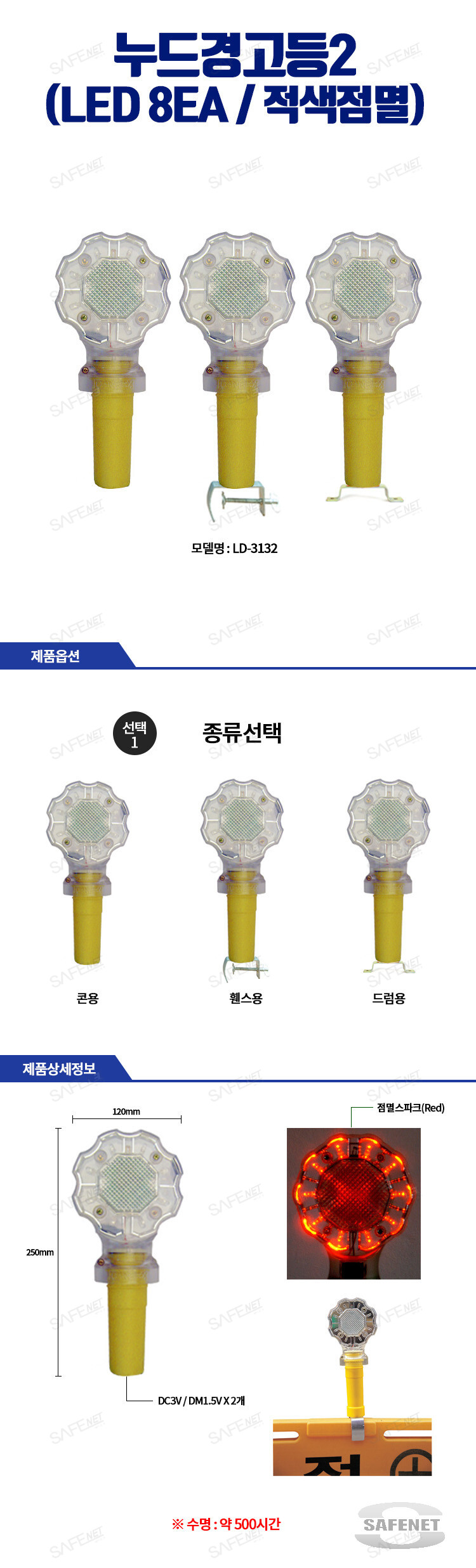 규격 120 X 270mm / DM 1.5V 건전지 2개 / LED 8EA / 적색스파크점멸