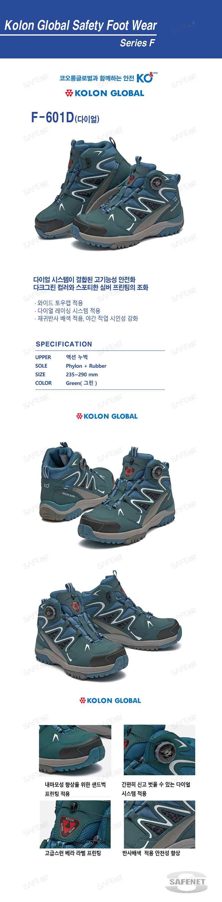 다이얼 시스템이 결합된 고기능성 안전화 다크그린 컬러와 스포티한 실버 프린팅의 조화