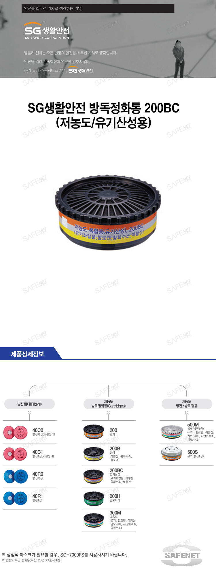 SG생활안전 방독정화통 200BC (저농도/유기산성용)