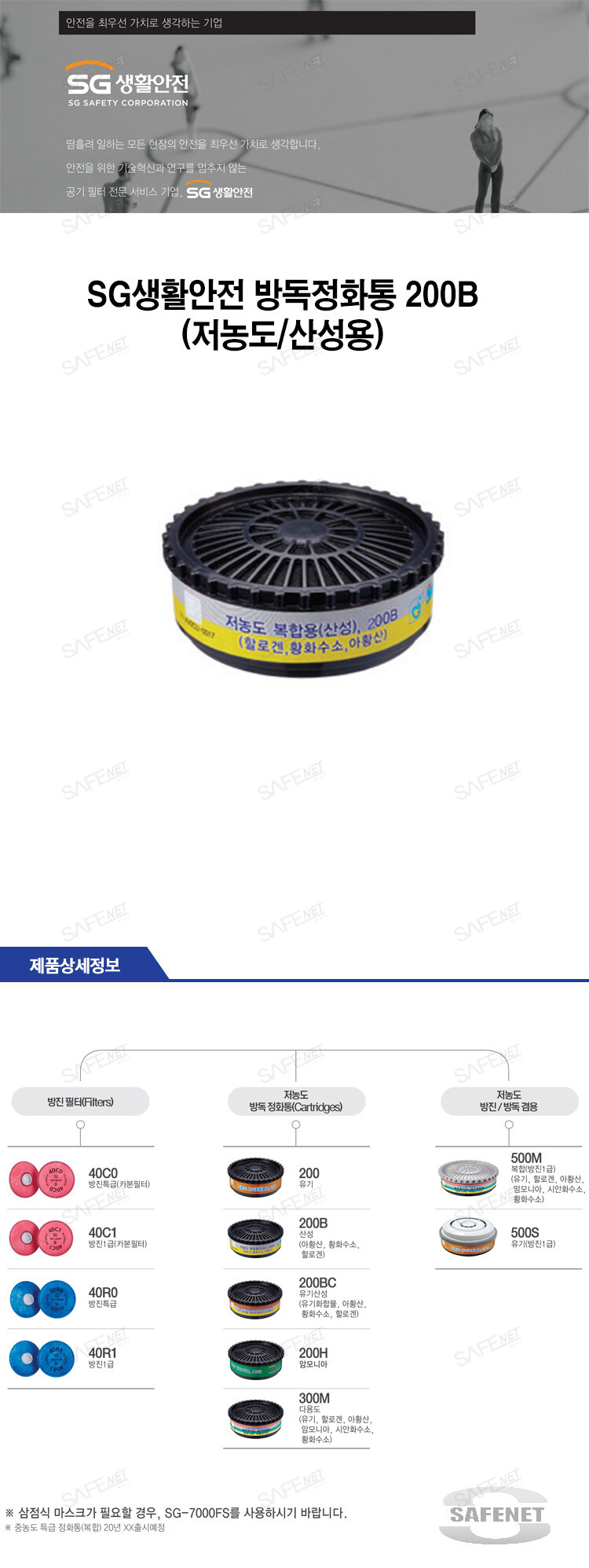 SG생활안전 방독정화통 200B (저농도/산성용)